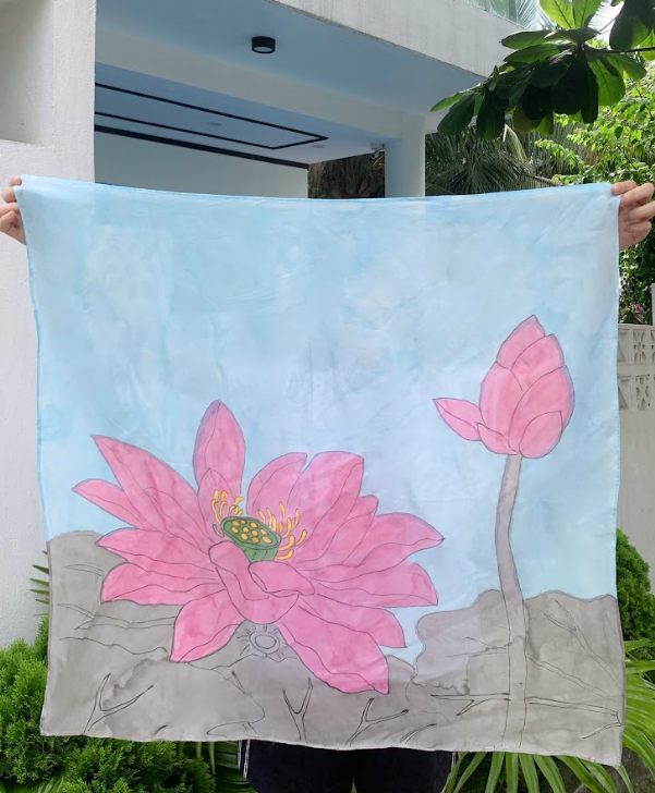 Giới thiệu về khăn lụa tơ tằm vẽ tay hoa sen hồng