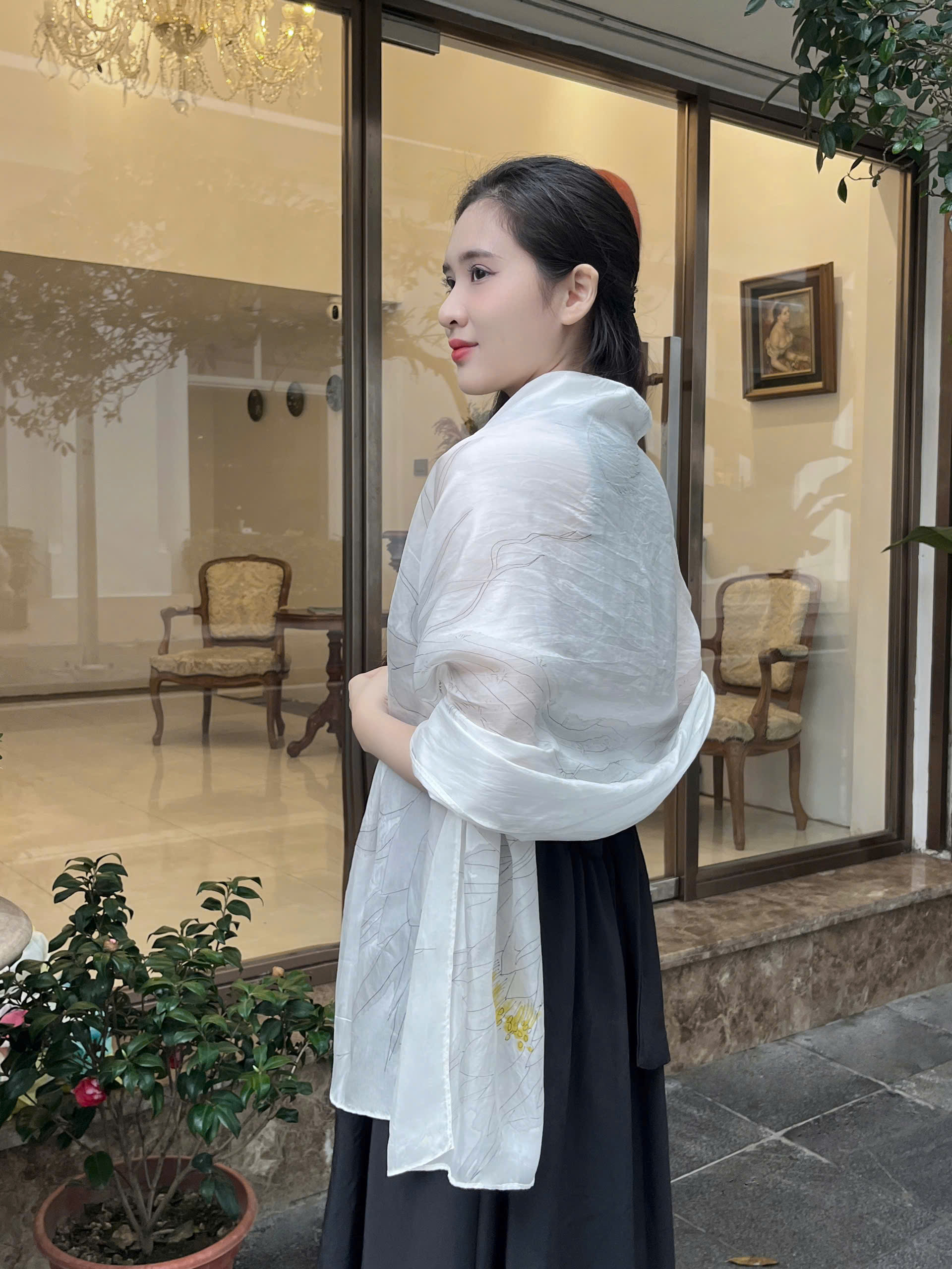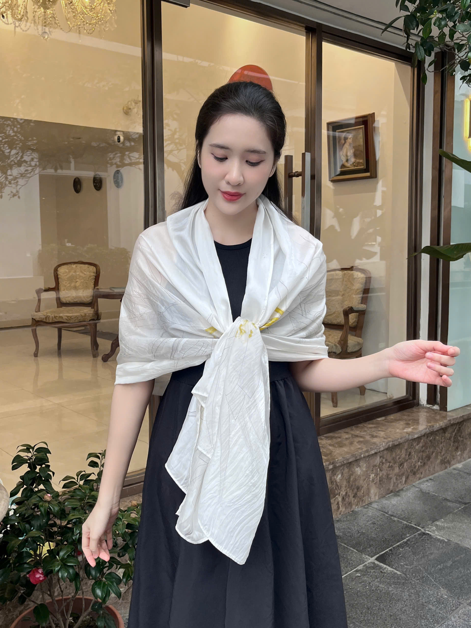 Chiếc khăn không chỉ là phụ kiện thời trang tinh tế mà còn mang ý nghĩa về vẻ đẹp thuần khiết, sự thanh cao và những khoảnh khắc quý giá.