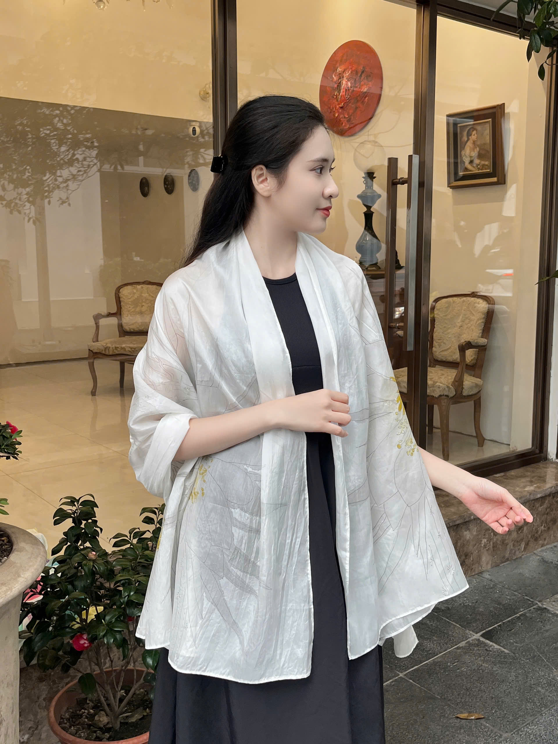Khăn lụa vẽ tay hoa quỳnh là lựa chọn lý tưởng cho nhiều dịp: