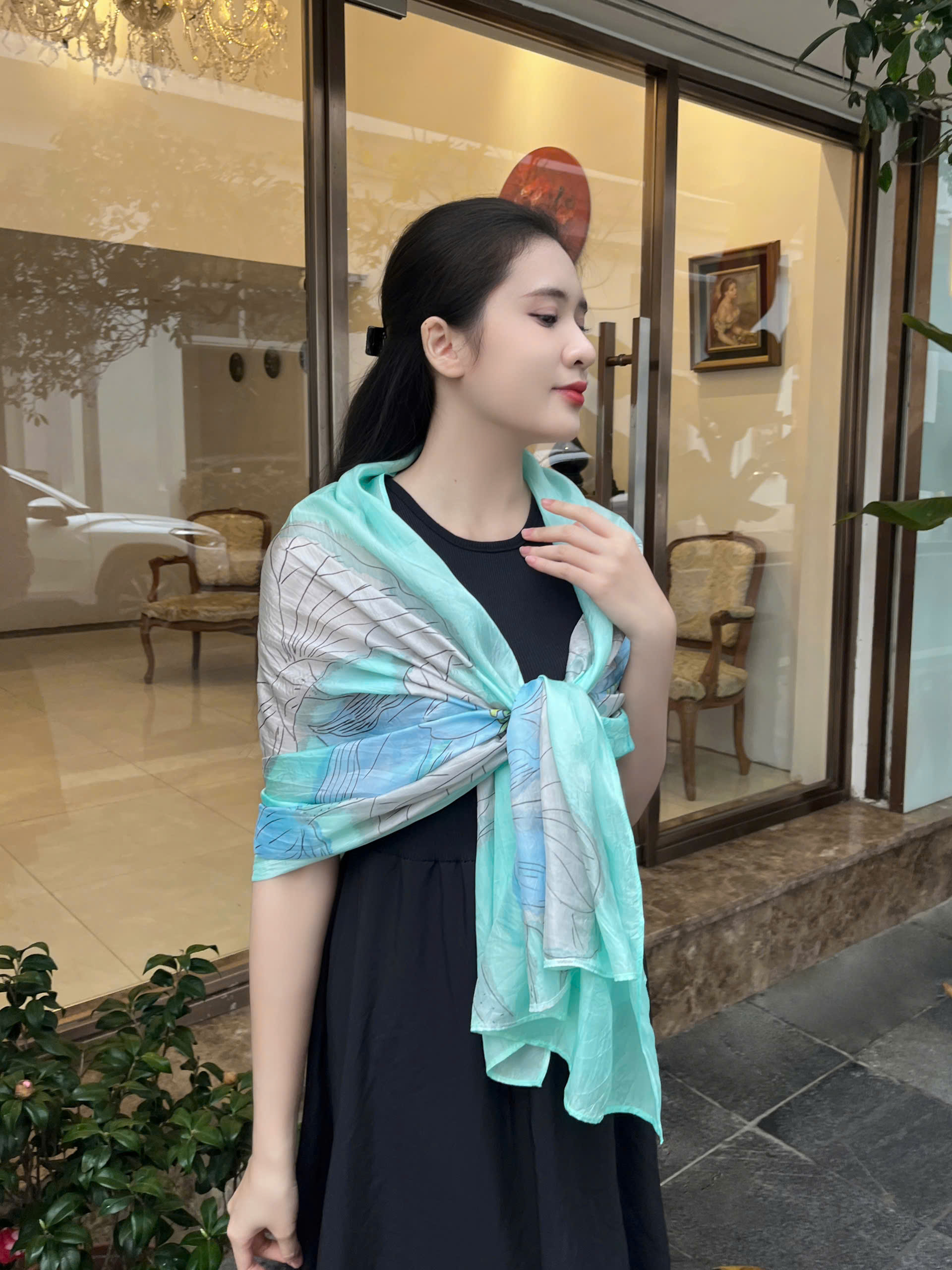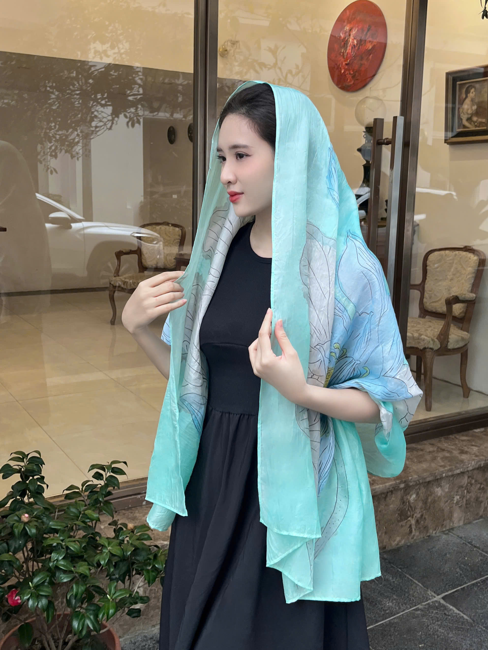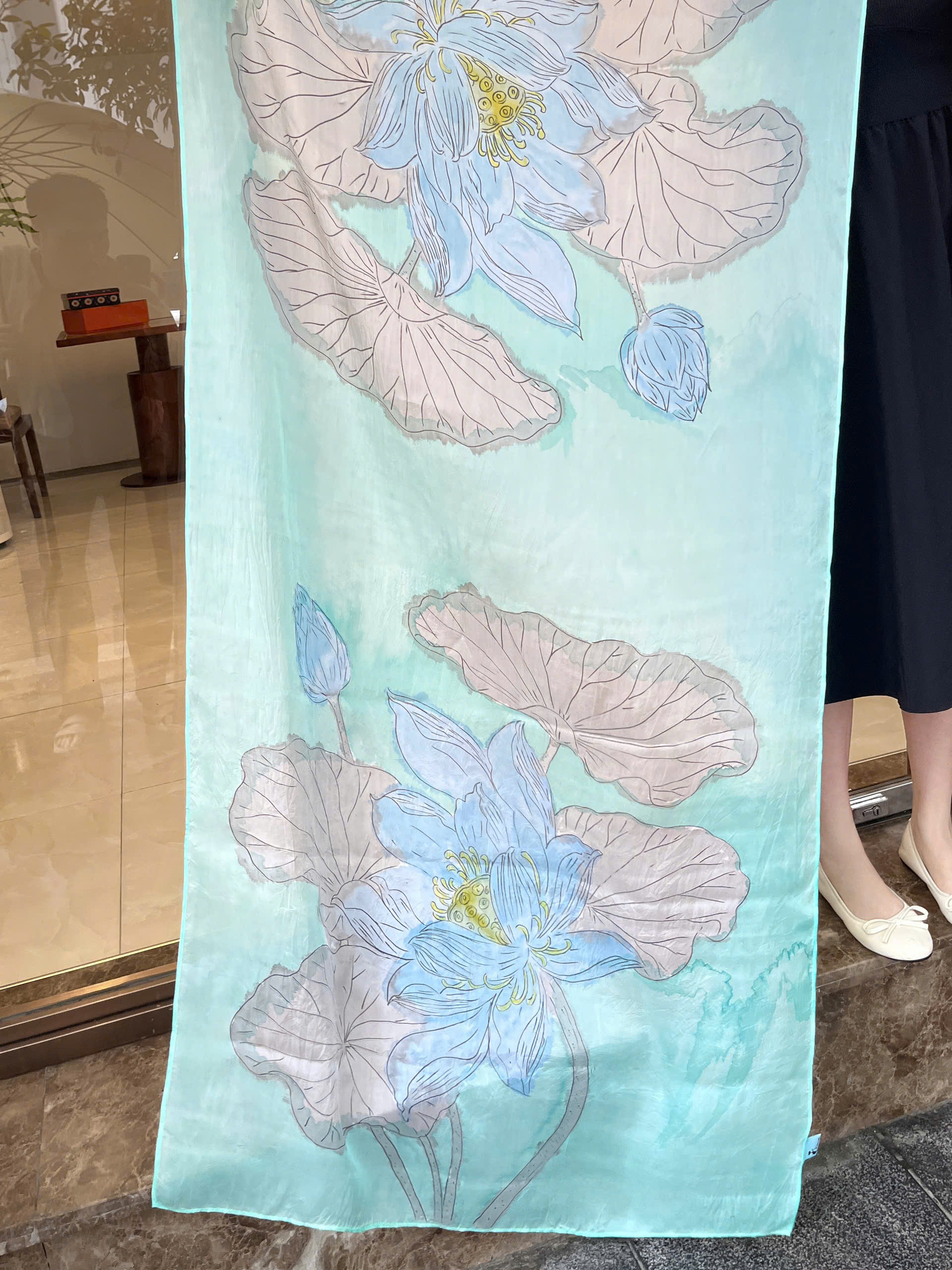 Khăn lụa vẽ tay hoa sen xanh là lựa chọn lý tưởng cho nhiều dịp: